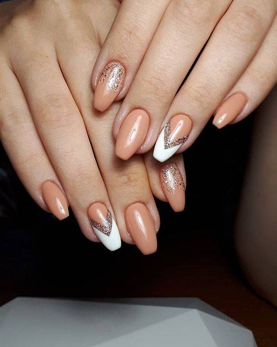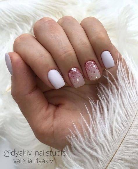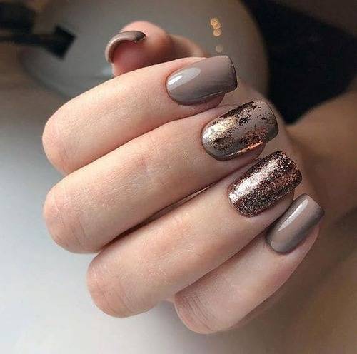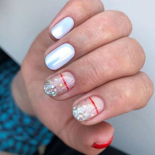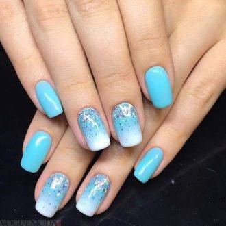Кажется блестки уже никогда не выйдут из моды нейл арта. Несмотря на всю помпезность, этот вариант дизайна выбирает большое количество женщин. Чтобы снизить эффект новогодней елки, блестки сейчас используют в самом выгодном варианте. Можно покрыть несколько ногтей, а можно растянуть их от кутикулы к краю, создавая эффект градиента.