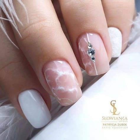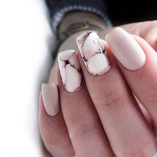 Мраморный эффект на короткую длину ногтевой пластины является настоящим пиком популярности в этом сезоне. Эффект переливающегося мраморного камня настолько понравился женщинам, что такой вариант делает хоть раз каждая из них