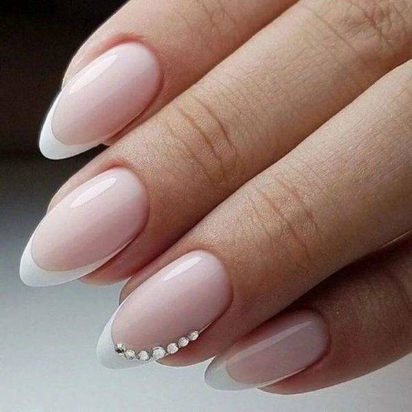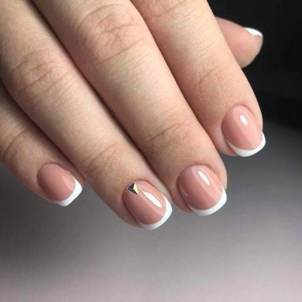 На коротких овальных ногтях идеально будет смотреться классический французский маникюр. При его создании следует придерживаться правил: