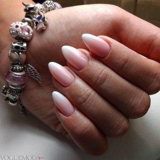 Этот вариант светлого покрытия можно смело называть классикой. Светлым должен быть не только кончик, но и само покрытие ногтевой пластины. Экспериментировать можно, пожалуй, только с формой улыбки.