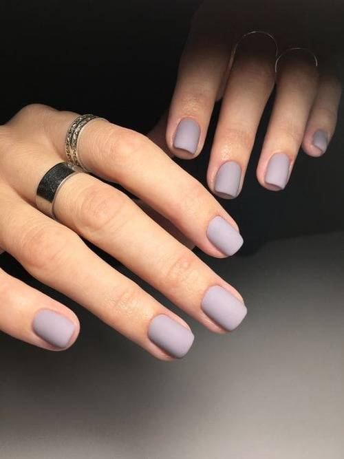Матовый дизайн самый универсальный из всех. С таким можно показаться в офисе и на празднике. Ничего лишнего, только стиль. Но есть у такого варианта и свой недостаток – матовое покрытие хорошо подчеркивает все недостатки поверхности. Чтобы избежать этого, перед покрытием, ногтевую пластину нужно хорошо выровнять.