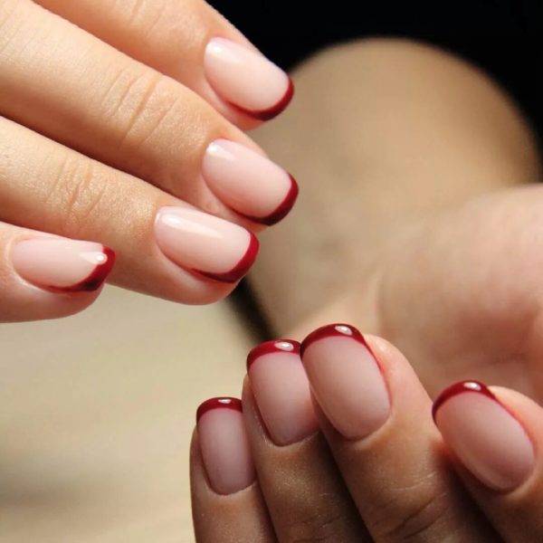 - тонкая линия френча одинакового цвета на всех ногтях;
