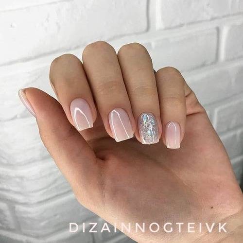 Модный светлый маникюр с жемчужной втиркой уже несколько сезонов остается популярным. Прелестный и очень нежный вариант светлых тонов с переливом придется по вкусу многим.