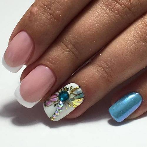 По желанию можно сделать дизайн на 1-2 ноготка. Приклеить стразы или полубусины, искусственные жемчужинки или готовый рисунок