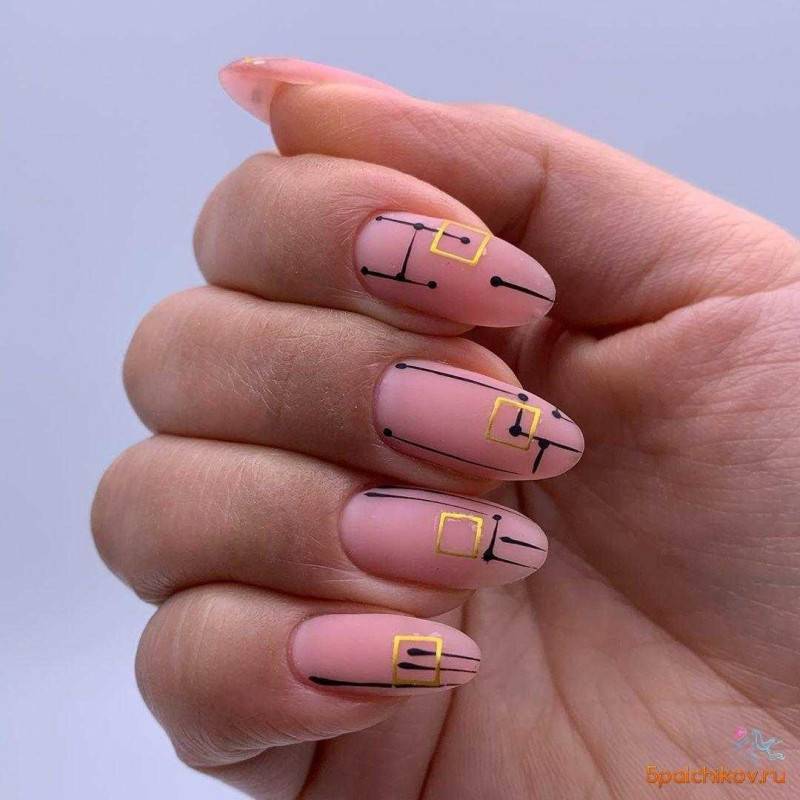 Кроме этого в качестве рисунка для коротких ногтей часто используют абстрактную графику. Такой маникюр придает образу загадочности, оригинальности.