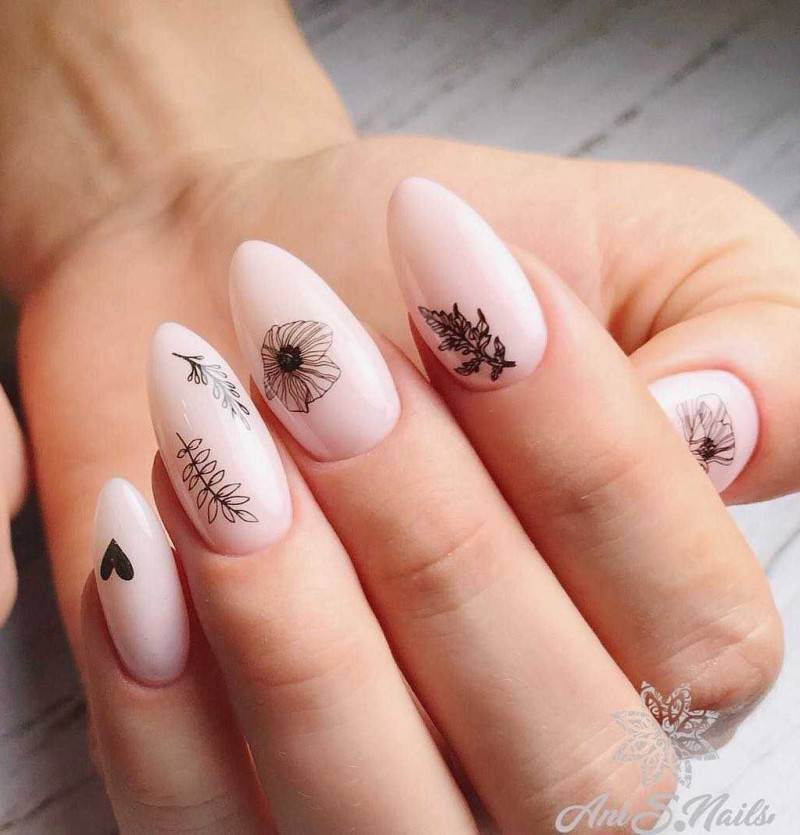 Особенно летом 2021 будут ценится простые одуванчики. Они выполняются в едином или множественном числе, где каждый цветок сможет украшать свою часть ноготка. Больше всего пользуется популярностью черно-белый рисунок на пастельном тоне.