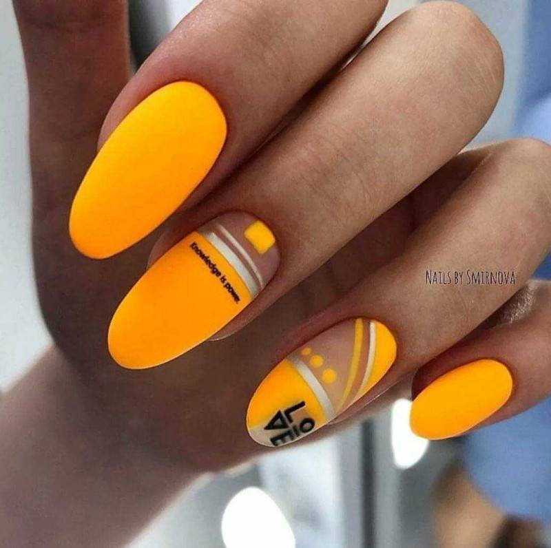 На пике популярности находится маникюр «разные ручки». Это фантастический дизайн, который смотрится очень стильно в сочетании с любой одеждой. Попробуйте покрыть ногти на одной руке желтым цветом, а на другой – оранжевым. Можно также добавить рисунки апельсинов или лимонов на одну из рук. Это отличный вариант для летнего маникюра.