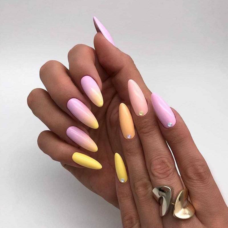 Цветовые решения летнего яркого маникюра 2020 чудесным образом переплели в себе ауру времени года, ожидание релаксации и лёгкую праздничную атмосферу, поэтому самые модные оттенки заимствованы у природы, в периоды активного роста растений и пышных цветений. Мода 2020 культивирует смелое сочетание нежных и сочных оттенков, представленных в самых необычных вариациях. Для модного разноцветного маникюра актуальны оригинальные чередования оттенков, футуристичные и реалистичные изображения цветов, травинок, веточек, фруктово-ягодные сюжеты, блестящие переливы втирки, смелые переходы градиента и многие другие идеи.