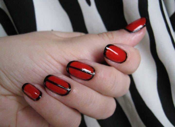 Визуально удлинит пальцы и исправит неправильную форму ногтей вертикальные полосы или геометрические фигуры.