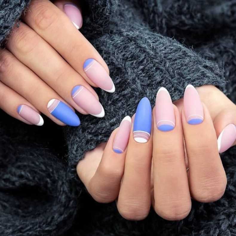 Голубой маникюр с розовым фото 2022 новинки модные идеи
