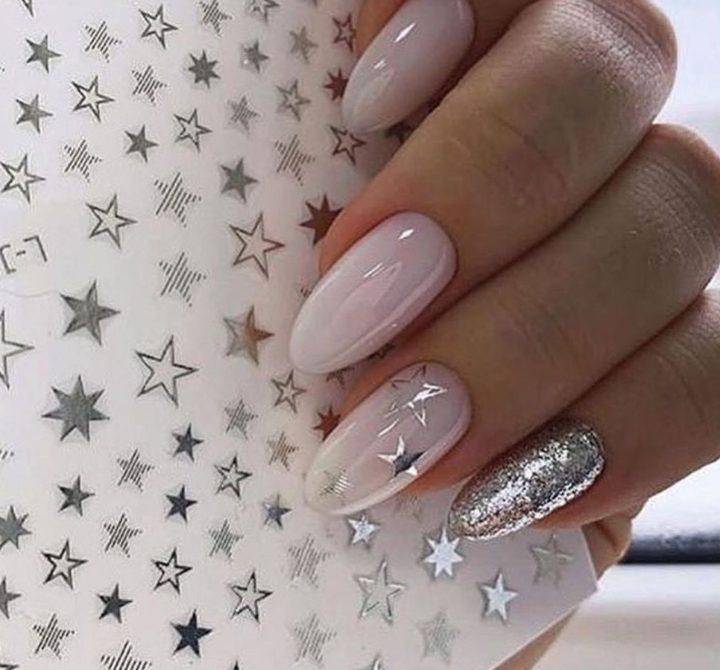 Здесь также могут присутствовать звездочки разнообразной формы и цвета и конечно же размера, что немало важно. В продаже есть очень красивые наклейки, которые вместо рисунка смогут украсить ногтевую пластину