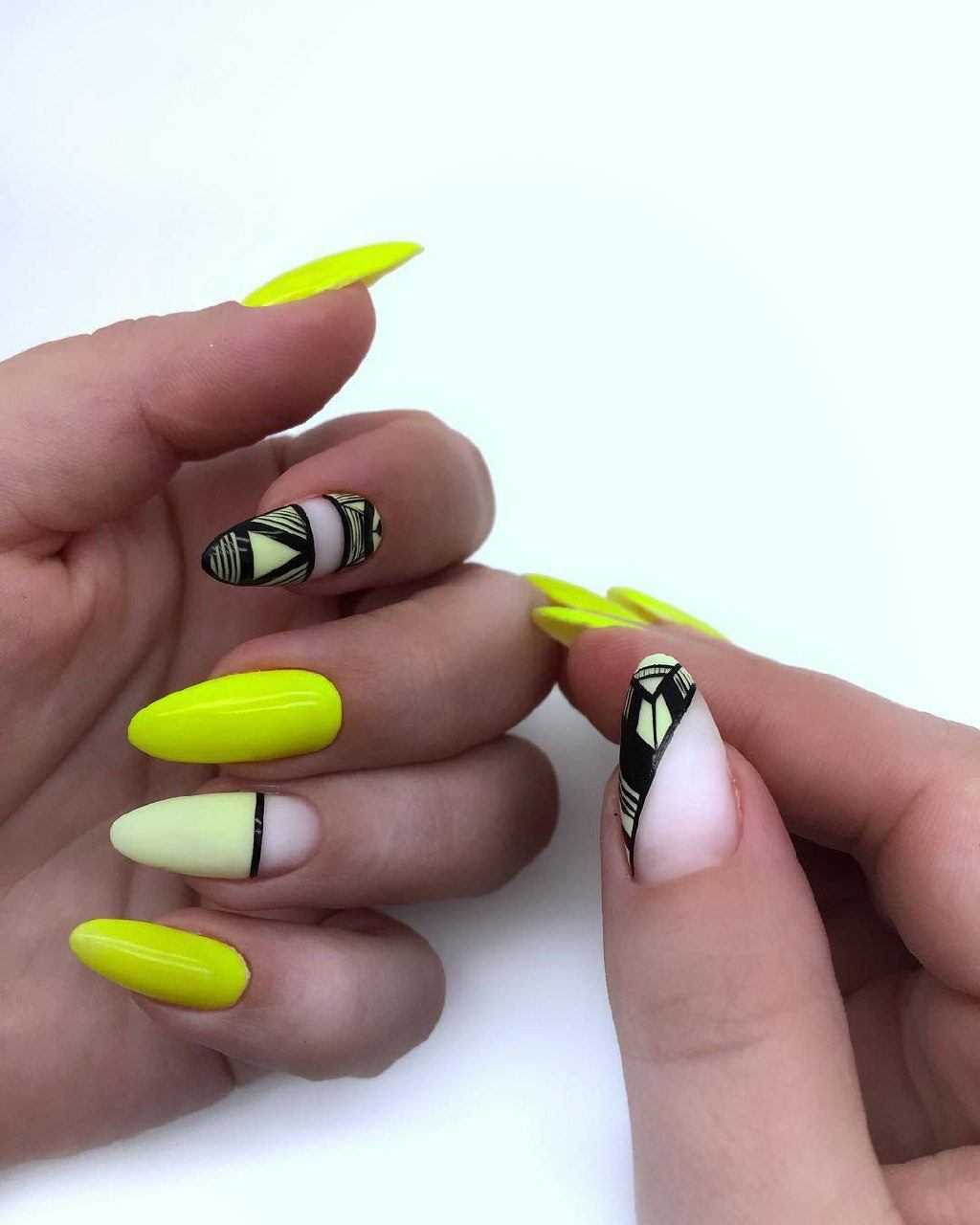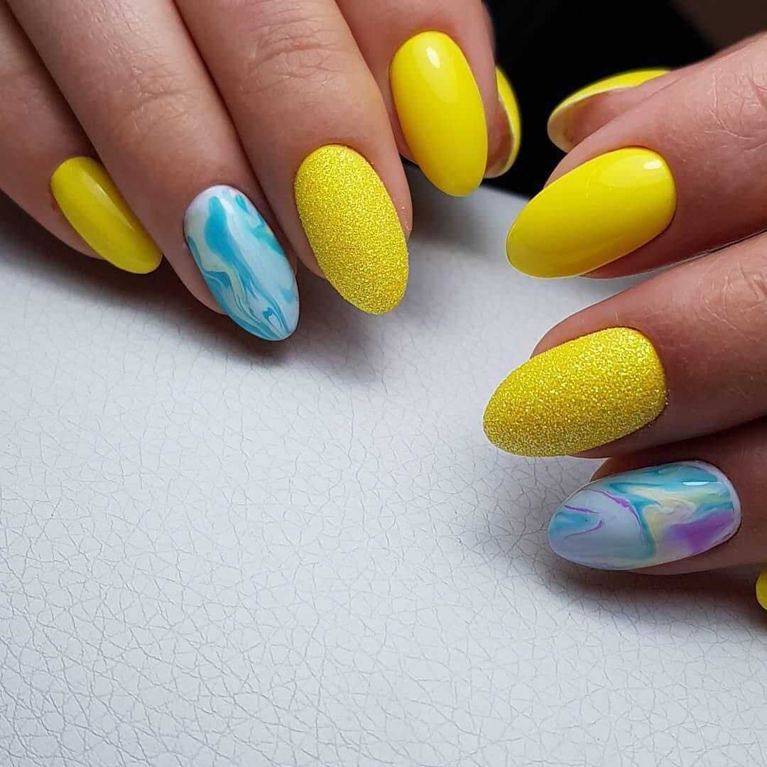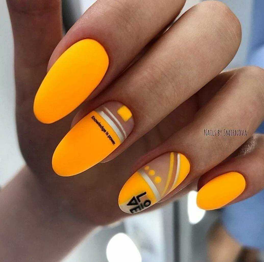 На пике популярности находится маникюр «разные ручки». Это фантастический дизайн, который смотрится очень стильно в сочетании с любой одеждой. Попробуйте покрыть ногти на одной руке желтым цветом, а на другой – оранжевым. Можно также добавить рисунки апельсинов или лимонов на одну из рук. Это отличный вариант для летнего маникюра.