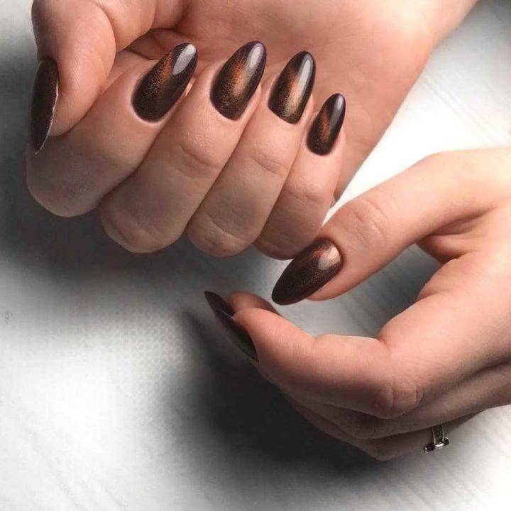 Приоритет следует делать на темные тона и маникюр в стиле металлик.