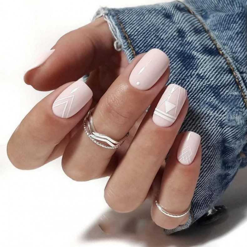Кроме этого в качестве рисунка для коротких ногтей часто используют абстрактную графику. Такой маникюр придает образу загадочности, оригинальности.