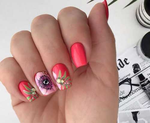 Не нужно бояться экспериментировать и проявлять себя, ведь лето именно для этого и создано: только в это время года ногтям позволено быть оригинальными и необычными. Например, пусть на каждом пальчике будет своя собственная яркая «история». На один можно «посадить» цветочек, на другой – пчелку, на третий – бабочку и т.п. А вот на большом пальце отлично будет смотреться яркое солнышко.