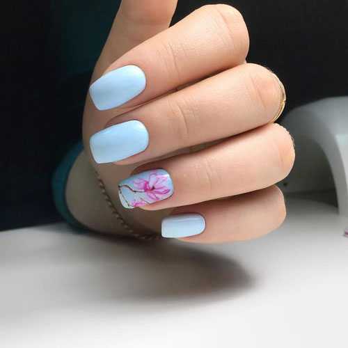 Голубое небо, морская вода, незабудки в поле – столько ассоциаций у нас связано с этим замечательным цветом. Поэтому, если вы никогда не делали голубой маникюр, то непременно восполните этот непростительный пробел. С этим цветом вы можете создать любой дизайн, воплотить в жизнь свои самые смелые идеи.