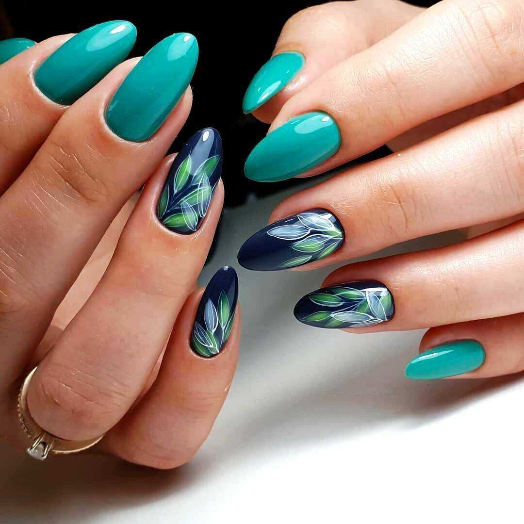 Фантазия нейл-мастеров не иссякнет никогда. В этом году они предлагают свежие идеи с природными мотивами. В данном случае речь идет о тропическом маникюре, который отличается особой яркостью. Он предполагает стильное сочетание ярких крупных листьев с геометрическими деталями. Это могут быть фигуры и полоски, которые добавляют дизайну сдержанности. В свою очередь, листья могут быть нарисованы вручную, чтобы детали выглядели максимально натурально. Втирка, фольга и блестки — прекрасное украшение, которое помогает сделать дизайн более заметным, активным. Но в данном случае многое зависит от размера рисунка.
