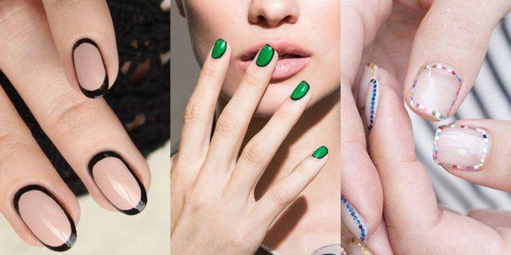 Не стоит использовать ни слишком крупные, ни слишком мелкие декоративные элементы. Дабы маникюр не был чересчур пестрым, выбирайте 2-3 цветовых оттенка, избегая объемного дизайна. Также стоит учесть, что модный маникюр на короткие ногти не приемлет блесток, особенно в огромном количестве.