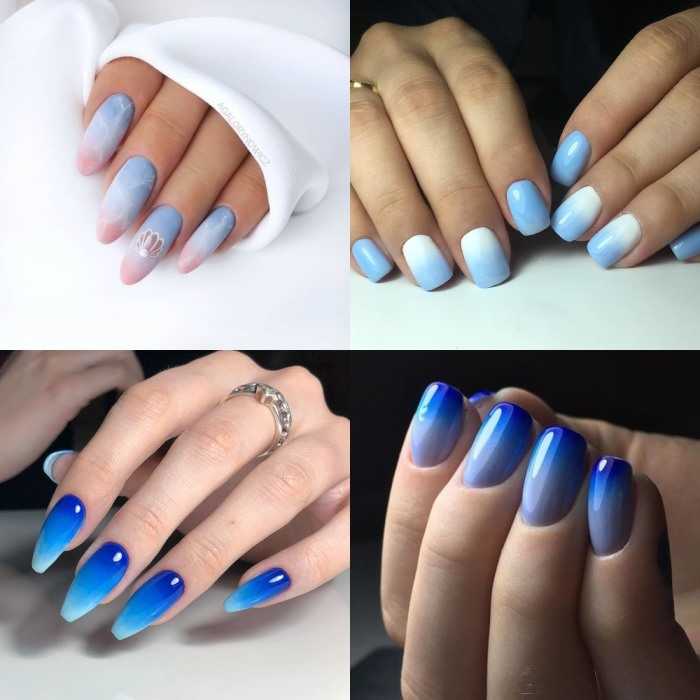 В текущем сезоне стилисты рекомендуют использовать широкий спектр переливов голубых и синих оттенков в сочетании с другими не менее нежными оттенками для создания омбре. Не бойтесь сочетать самые яркие и смелые цвета. Омбре является самодостаточным и стильным дизайном, полюбившимся миллионам сердец. По желанию, вы можете создать на ноготках акцент в виде аппликации в морской тематике.