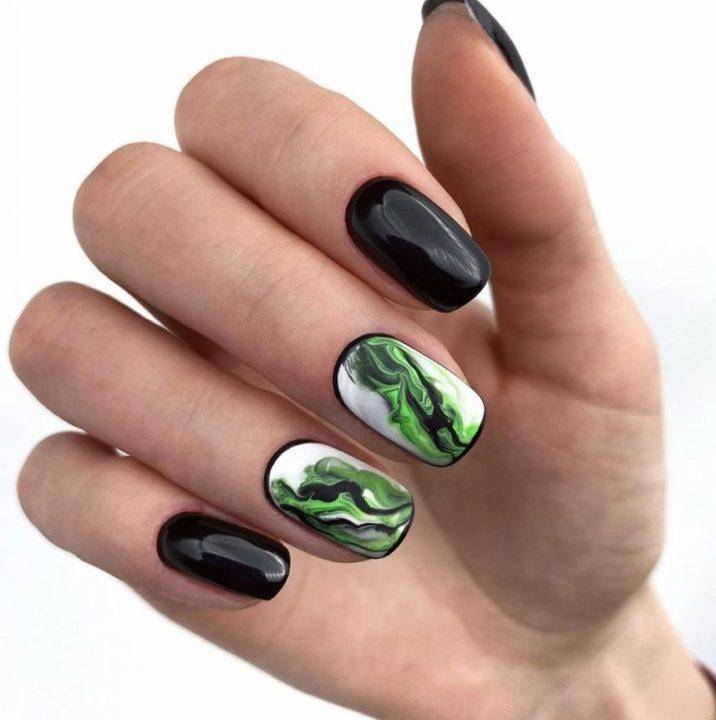 Лето 2021 — это период зеленого цвета. Больше всего здесь будет ценится изумрудный, который отличается богатством и насыщенностью цвета. Это лучший вариант маникюра, который сможет подойти к белой и темной коже.