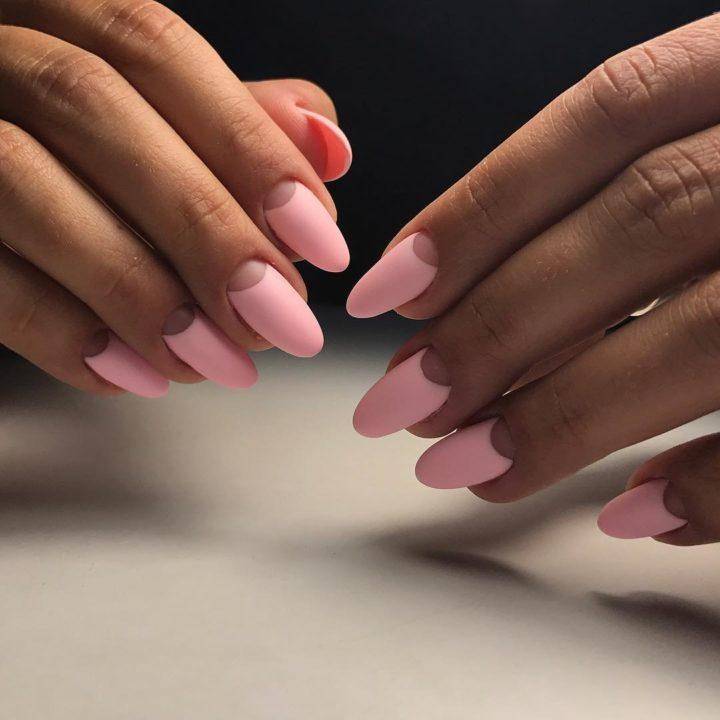 Интересным вариантом на летний период будет сделать лунный маникюр в матовом исполнении