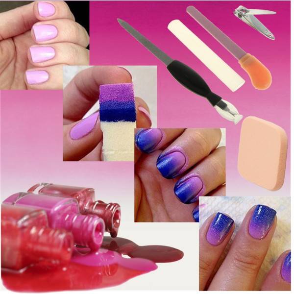 Для выполнения маникюра с эффектом перехода понадобятся: