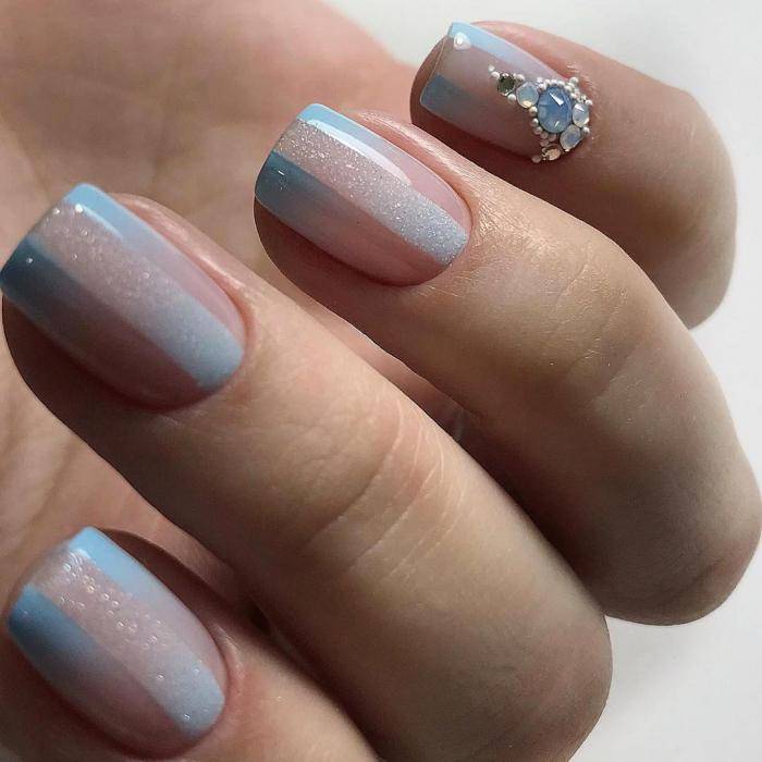 С первого взгляда неискушенной даме покажется, что ей не стоит и пробовать браться за создание столь утонченного нейл-арта, пытаться повторить маникюр омбре голубой или в другом цвете. Но такое впечатление обманчивое: в технике нет сложностей, с которыми не справился бы даже новичок.