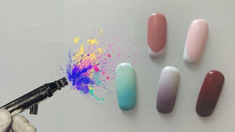 В салоне маникюр омбре мастер может сделать с помощью аэрографа. Этот инструмент позволяет наносить цвета с плавным переходом и экономить время. Если ранее дизайн делался около часа, то теперь его можно оформить за 10 минут. Причем на обеих руках.