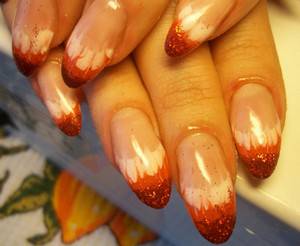 Кончики ноготков стали украшать вензелями, рисунками, блестящей мишурой.