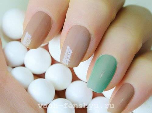 Опираясь на полученные знания, выберите один или два наиболее важных пальчика на правой руке. Красить ноготки вы можете палитрой цветов, которые соответствуют по феншую вашей стихии. Как выглядит маникюр по законам фэн-шуй в жизни? Предлагаем вам посмотреть несколько фото.