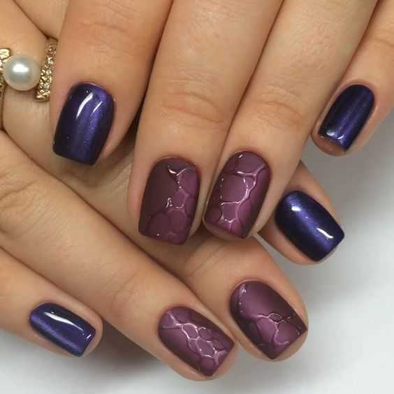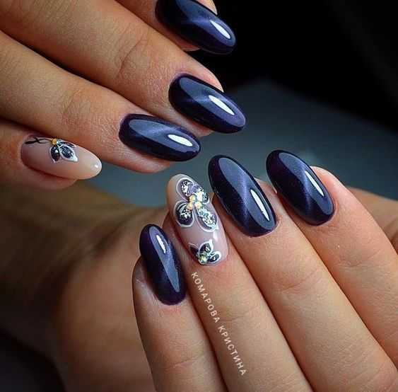 В отличии от предыдущего варианта, данные оттенки очень часто сочетаются в одном дизайне. За счет такой комбинации, на ноготках получаются потрясающе красивые переливы, характерные для драгоценных камней.