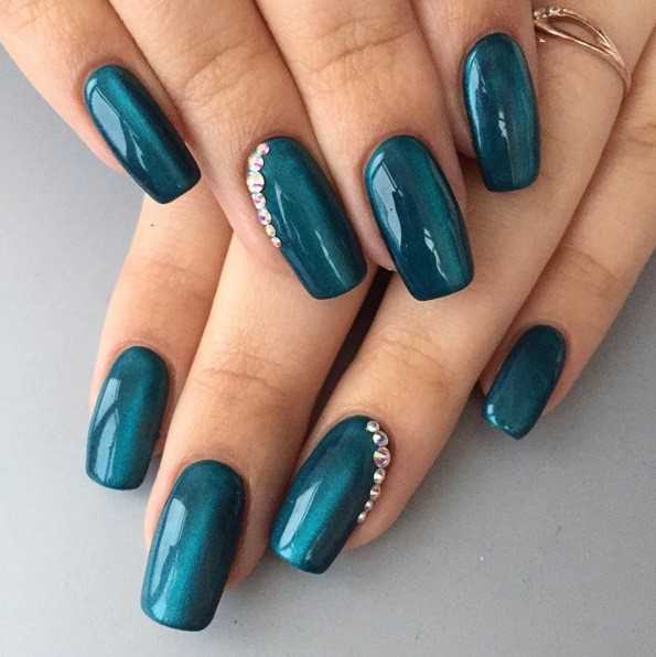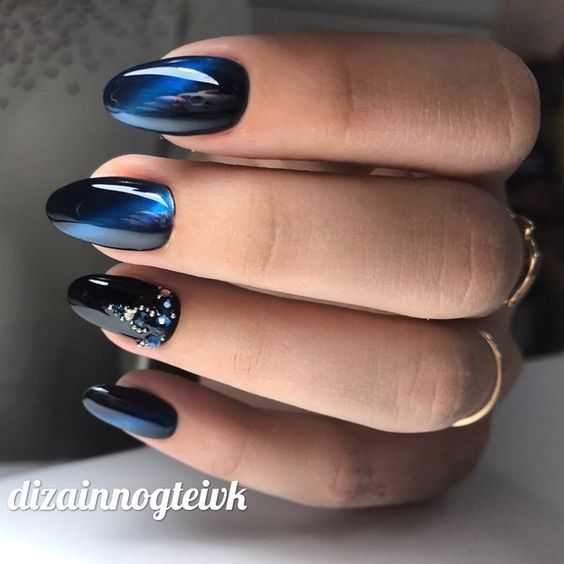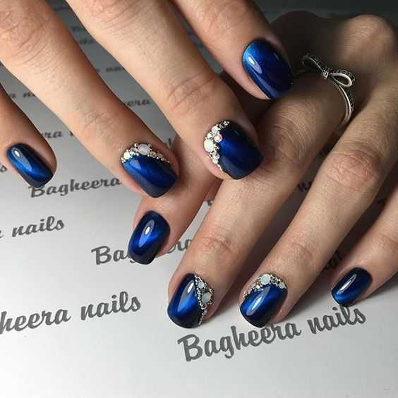 Стильный дизайн ноготков с бликами смотрится очень красиво. Но при желании его можно дополнить интересными деталями. Конечно же, наиболее часто его комбинируют со стразами. Это может быть несколько элементов на двух ноготках