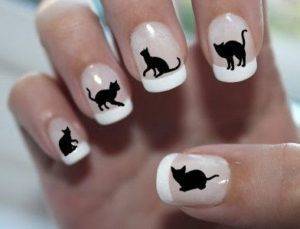 Черной гелевой ручкой. Как подсказывают практики, в большом почете маникюр с черными кошками. И тут пригодится удобное открытие любительниц домашнего маникюра. На готовую цветную основу наносятся изображения гелевой ручкой. Рисовать таким способом намного привычнее, чем кисточкой. Линии получаются четче. Дизайн создается быстрее. Затем художество покрывается закрепителем. Скорее всего, такой способ не одобрят специалисты салона, считая его непрофессиональным. Но результат может быть отличным!