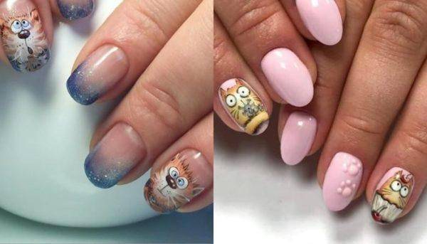 Маникюр с кошками — 17 фото идей маникюра с кошками на ногтях