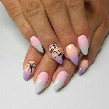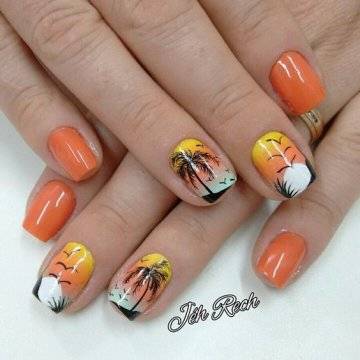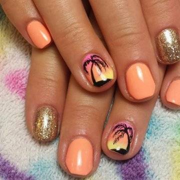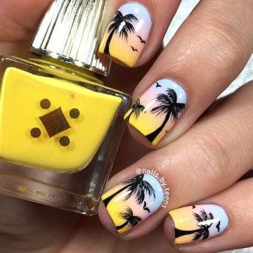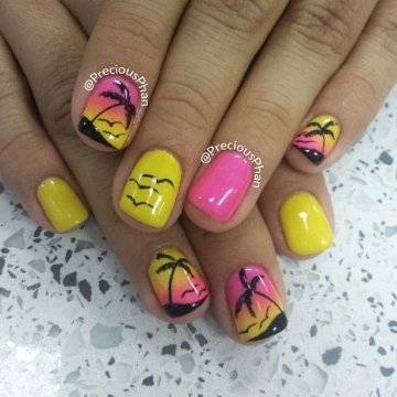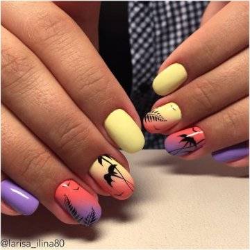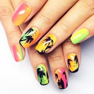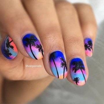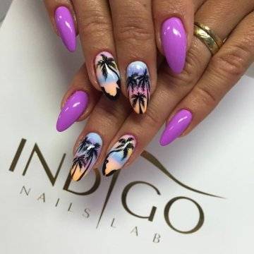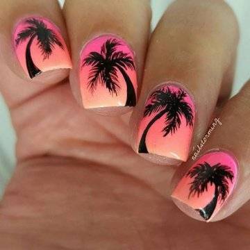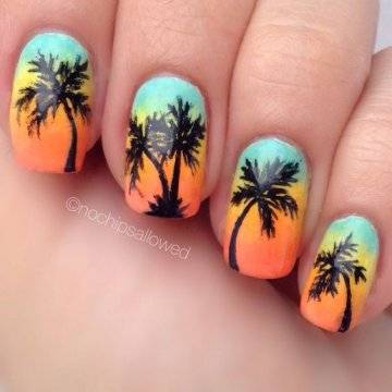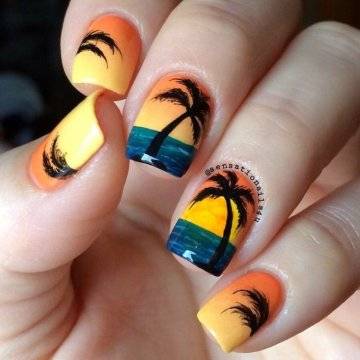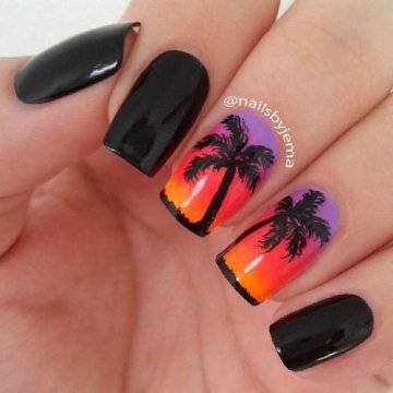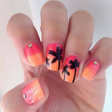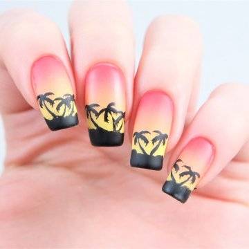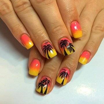 Один из самых изысканных новинок летнего дизайна ногтей – пальмы на закате.