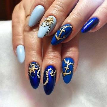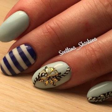 Модный морской маникюр с рисунком и украшениями: фото 2021