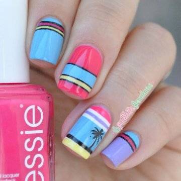 Нейл-арт на отдыхе не терпит скуки, никакого нюда, пастельных оттенков. Их присутствие оправдано только острой необходимостью: создание контраста, фона, негативного пространства, френча. Но есть и исключения из правил.