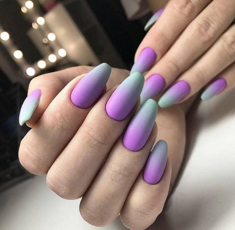 Градиент аэропуфинг на ногтях.