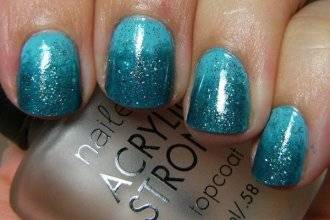 Пигменты и акриловая пудра. Еще один способ получения желаемого эффекта. Их наносят, пока лак не высох, распределяя мельчайшие частички по ногтю, чтобы получить эффект растяжки желаемой интенсивности. Кроме собственно пигментов либо акриловой пудры, понадобится кисточка. Используют плоскую или круглую, но подойдет и веерная. В зависимости от этого будет меняться и техника создания градиента. Такой вариант тоже могут испробовать новички. Нужно только немного приноровиться, и получатся идеальные плавные переходы.