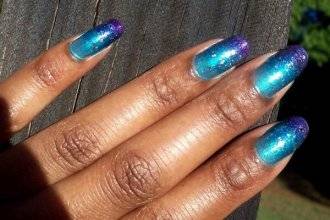 - На каждый палец можно подобрать персональный градиентный переход. Цветовое оформление можно украсить блесками и другими декоративными элементами.