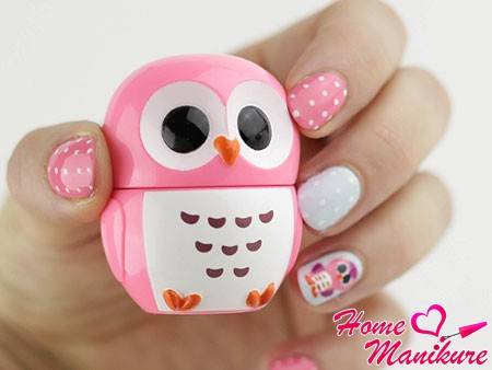 Лето – идеальное время, чтобы сделать маникюр с совами, фото которого представлено ниже.