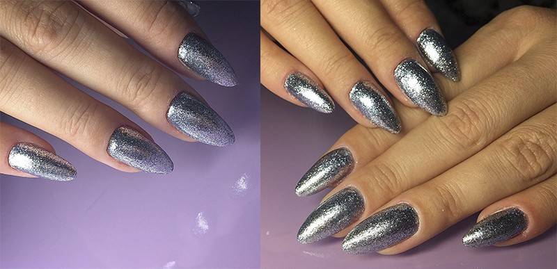 - Возможность создать роскошный маникюр с минимумом усилий на ногтях любой длины и формы. «Слюдяные» гель-лаки чудесно смотрятся как на на коротких натуральных, так и на нарощенных ( или ). В носке они не тускнеет и не скалывается, цветовая составляющая не выгорает, а плотное мерцание не мутнеет даже при контактах с бытовой химией.