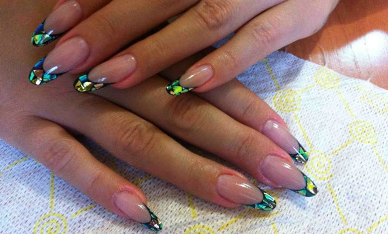 Как покрыть слюдой только определенные элементы дизайна? Как создать блестящий краешек ногтя во френче?