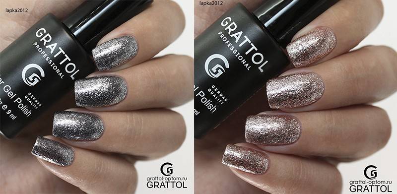 Как же приручить гель-лаки «жидкая слюда» и создавать с их помощью феерически-красивые ноготочки? Давайте рассмотрим технологию пошагового создания образа на примере покрытий Irisk Glossy Platinum и Grattol Vegas.