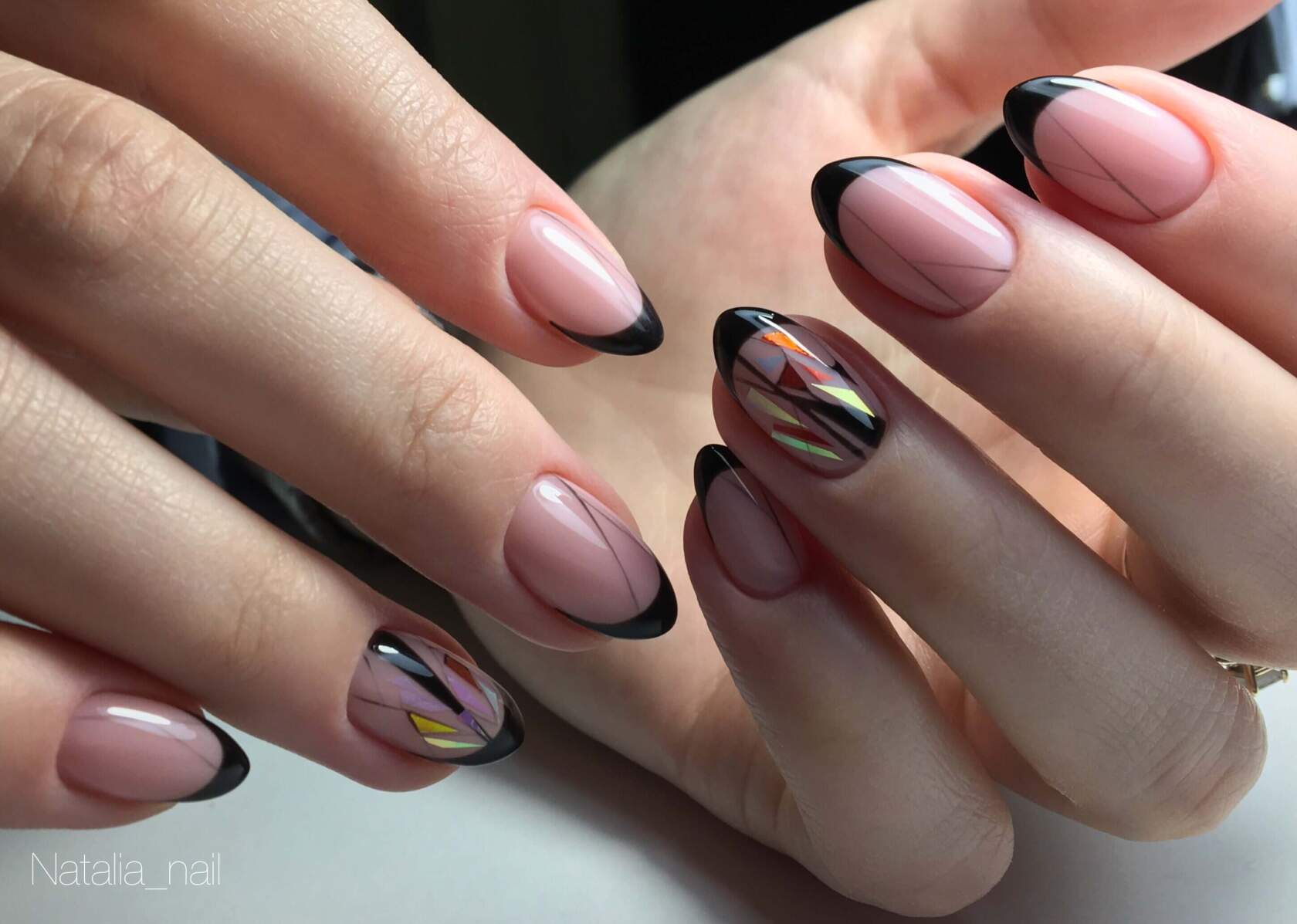 - Маникюр с черным цветом. Это сочетание придаст маникюру элегантный и сдержанный вид.