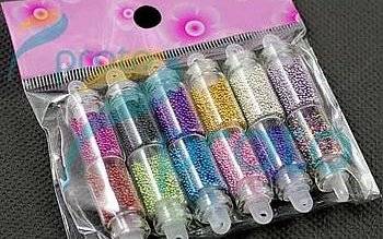 Так называемый икорный маникюр наносится на любой цвет лака, пока он еще не высох. Поверх бисера, размеры которого колеблются от размеров песка до имитации драгоценных камней, по всей поверхности ногтя наносят закрепитель. Затем маникюр помещают в ультрафиолетовую лампу для просушки.