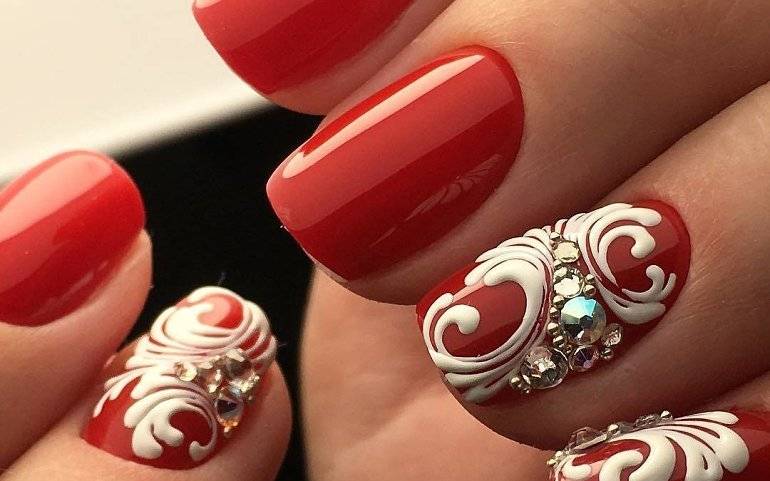 Большинство невест отдают предпочтение маникюру со стразами. Кристаллы могут украшать французский маникюр, однотонное покрытие или дополнять объёмную лепку, нежное кружево либо какой-то рисунок.