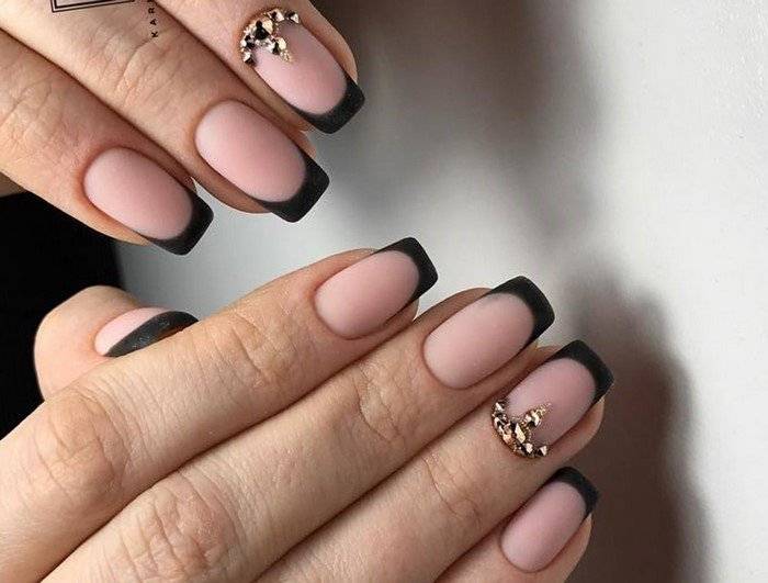 Хочется классики- оставьте ногти глянцевыми, а матовый черный создаст невероятное спокойствие на Ваших пальцах.