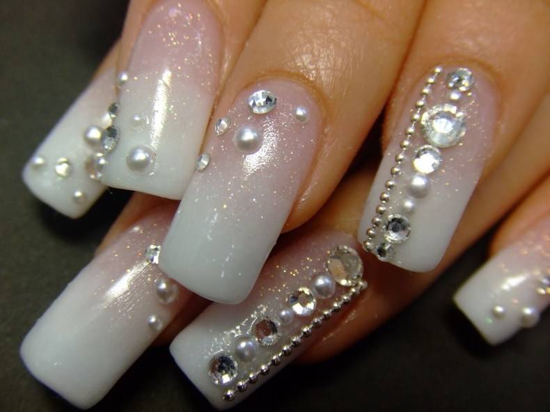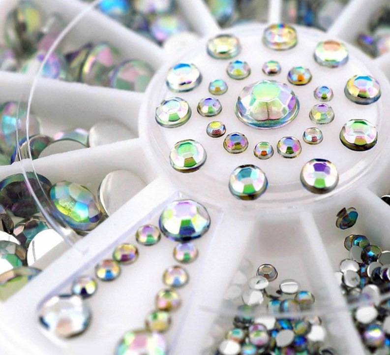 Обратите внимание, стеклянные и хрустальные стразы в течение 10 дней остаются идеально прозрачными и блестящими, а после — начинают тускнеть. Акриловые украшения теряют блеск очень быстро, но на них удобно практиковаться начинающему мастеру по маникюру.