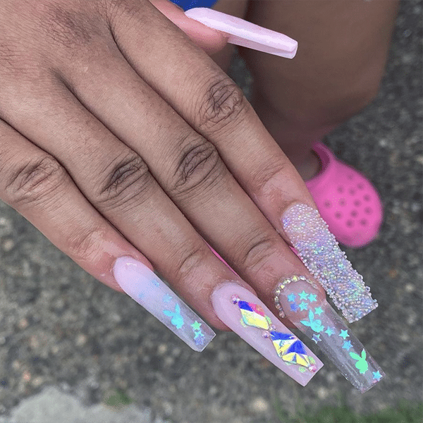 Ваш нейл-арт – это продолжение вашей личности. Это способ выразить себя и повеселиться, а игривые бриллиантовые ногти показывают миру, что вы женщина, которая не относится к жизни слишком серьезно. Если вам нужны яркие и смелые произведения искусства, это отличный вариант. Вы можете поиграть с разными цветными лаками и смешать и сочетать свои любимые стразы и бриллианты. Каждый ноготь может быть разным, что отлично, если вы не можете выбрать один дизайн. Этот образ делает заявление, и хотя это не самый практичный вариант и его нельзя носить в корпоративной обстановке, он идеально подходит для летнего отдыха.
